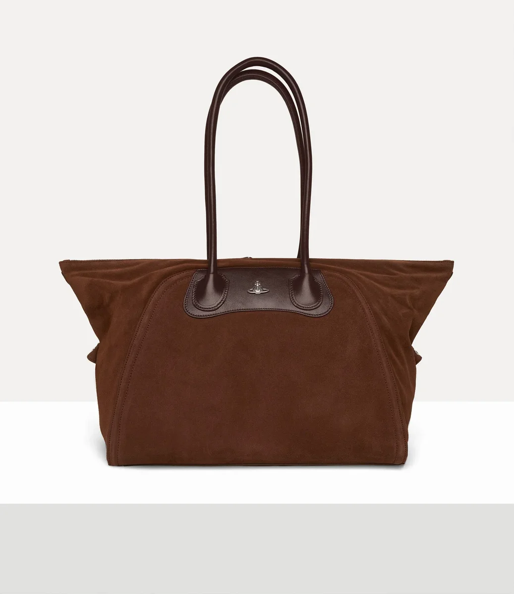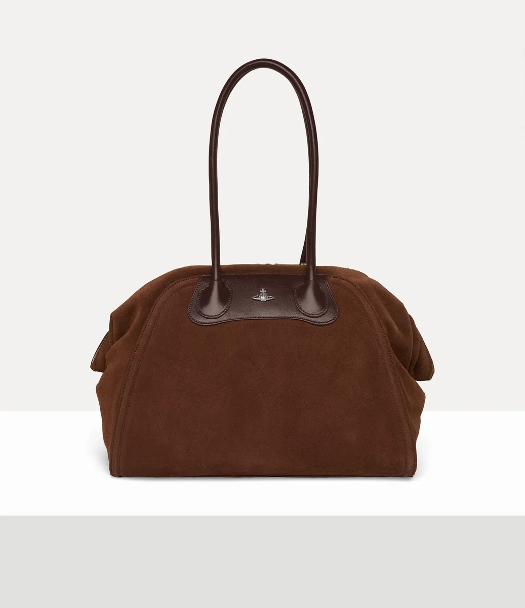 Geanta noastră Shirley Holdall se inspiră din silueta iconică Yasmine și eleganța relaxată a unei pături de picnic. Confecționată din piele de căprioară moale, cu detalii din piele netedă, piesa prezintă emblema mini bas orb a casei în partea din față a designului.