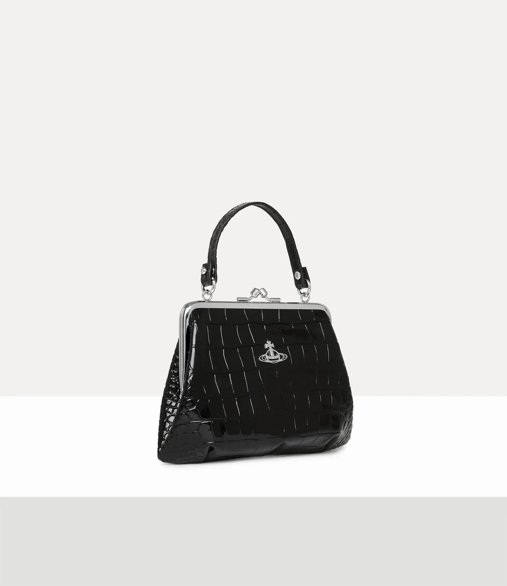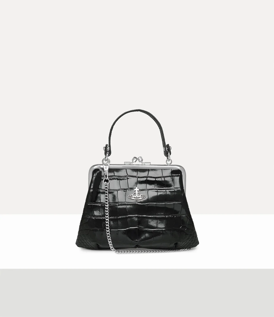 Silueta poșetei Granny Frame amintește de poșetele antice pentru monede de la începutul secolului al XX-lea, având o structură metalică cu închidere sigură cu încuietoare. Piesa oferă un efect de crocodil în relief pe întreg designul, completat cu motivul nostru clasic orb pe panoul frontal, sinonim cu etosul casei de a lansa trecutul în viitor.