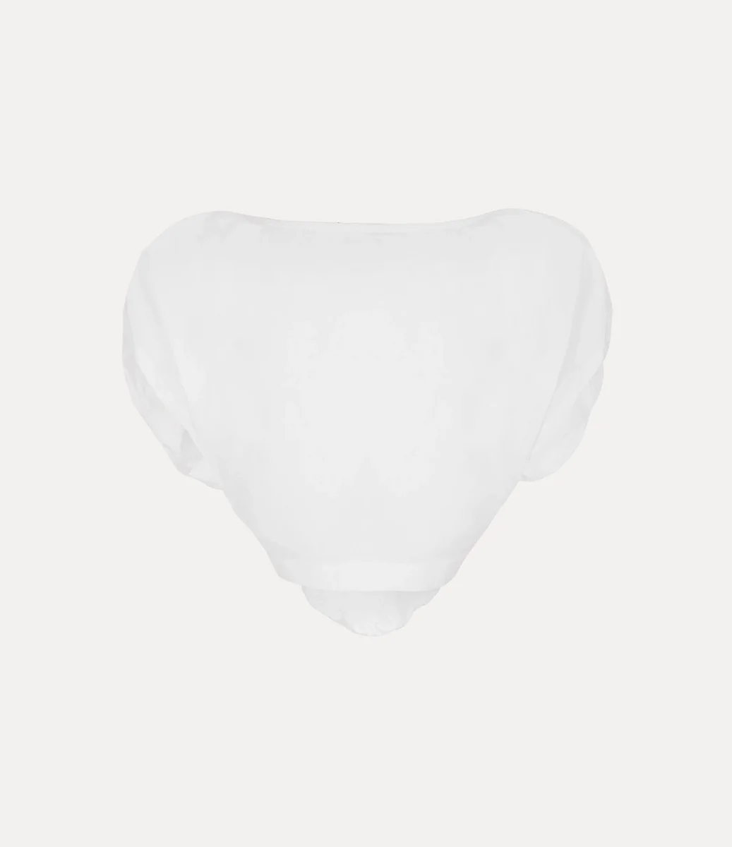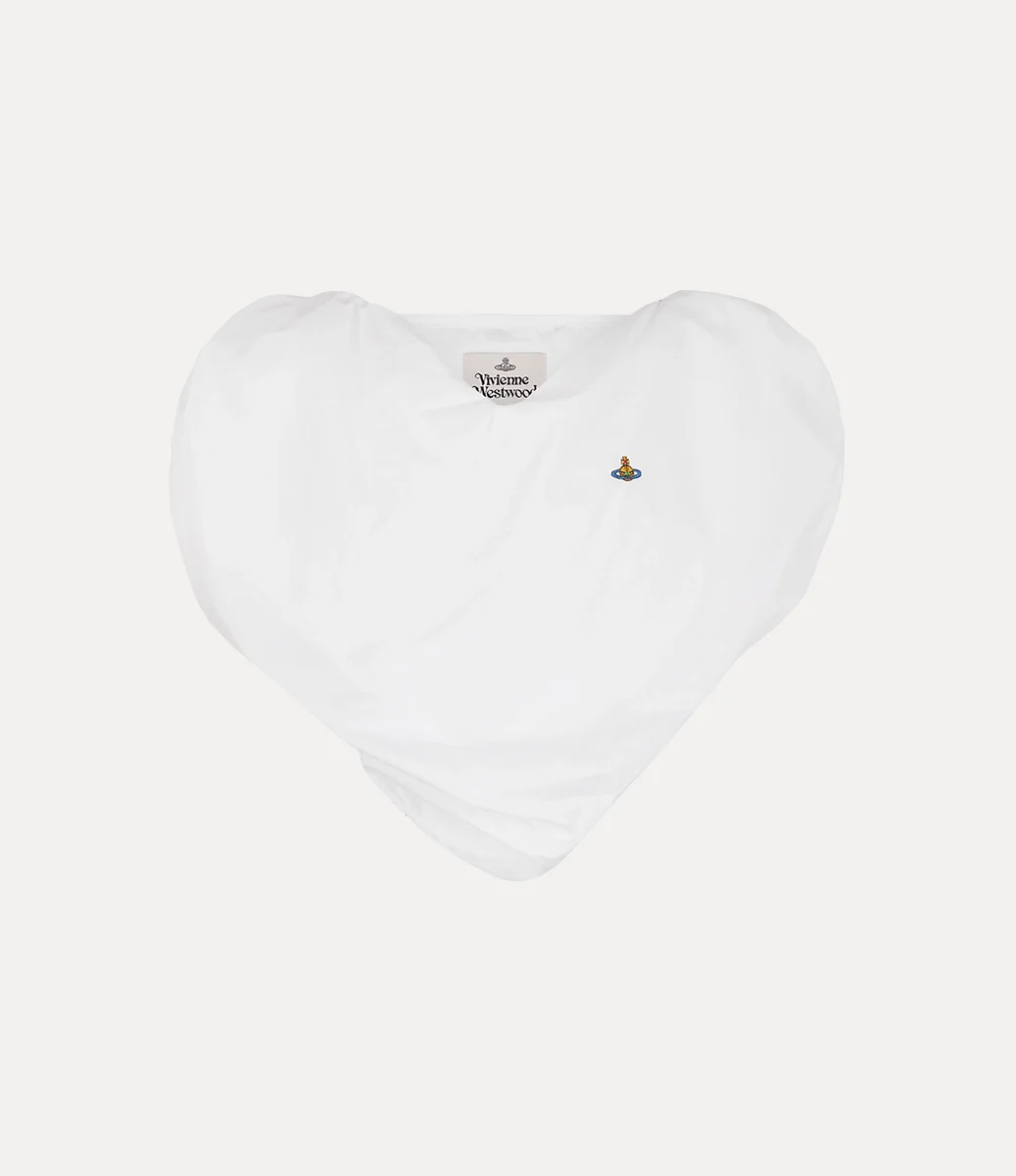 Forma asimetrică a inimii a devenit un stil caracteristic al casei de modă, apărând în multe colecții de-a lungul istoriei noastre. Topul Heart din acest sezon readuce în actualitate silueta pe care Vivienne a folosit-o pentru a evoca afecțiunea față de umanitate și planetă, completată cu un glob brodat în partea stângă a designului.