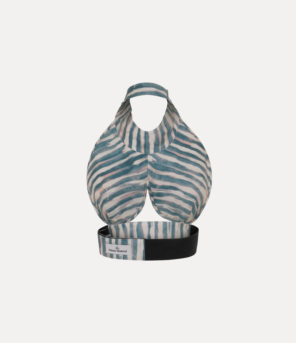 Topul fără mâneci Boob este confecționat din bumbac moale și are o croială sculptată care conturează delicat pieptul. Decolteul înalt și designul croit creează o siluetă flatantă, în timp ce pensulele pictate manual și finisajul supra-vopsit adaugă un aspect unic și texturat piesei.
