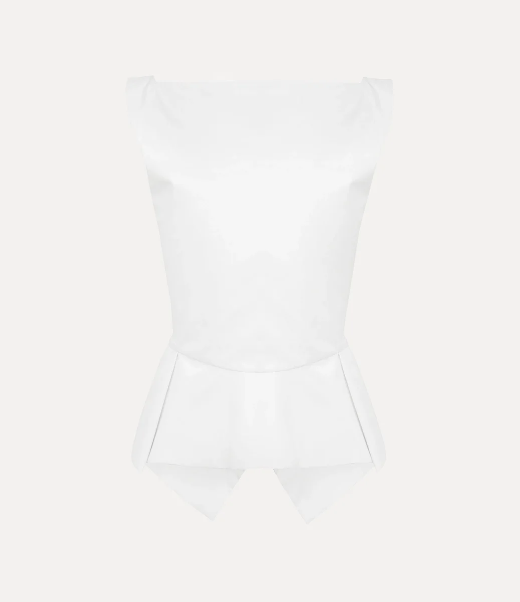 Vesta noastră Monday urmează o siluetă de arhivă, prezentată pentru prima dată în colecția primăvară-vară 1997, „Viva la Bagatelle”. Piesa are un decolteu clasic pătrat și cade ușor într-un tiv evazat peplum, care se strânge în pliuri delicate și un design în V inversat în față.