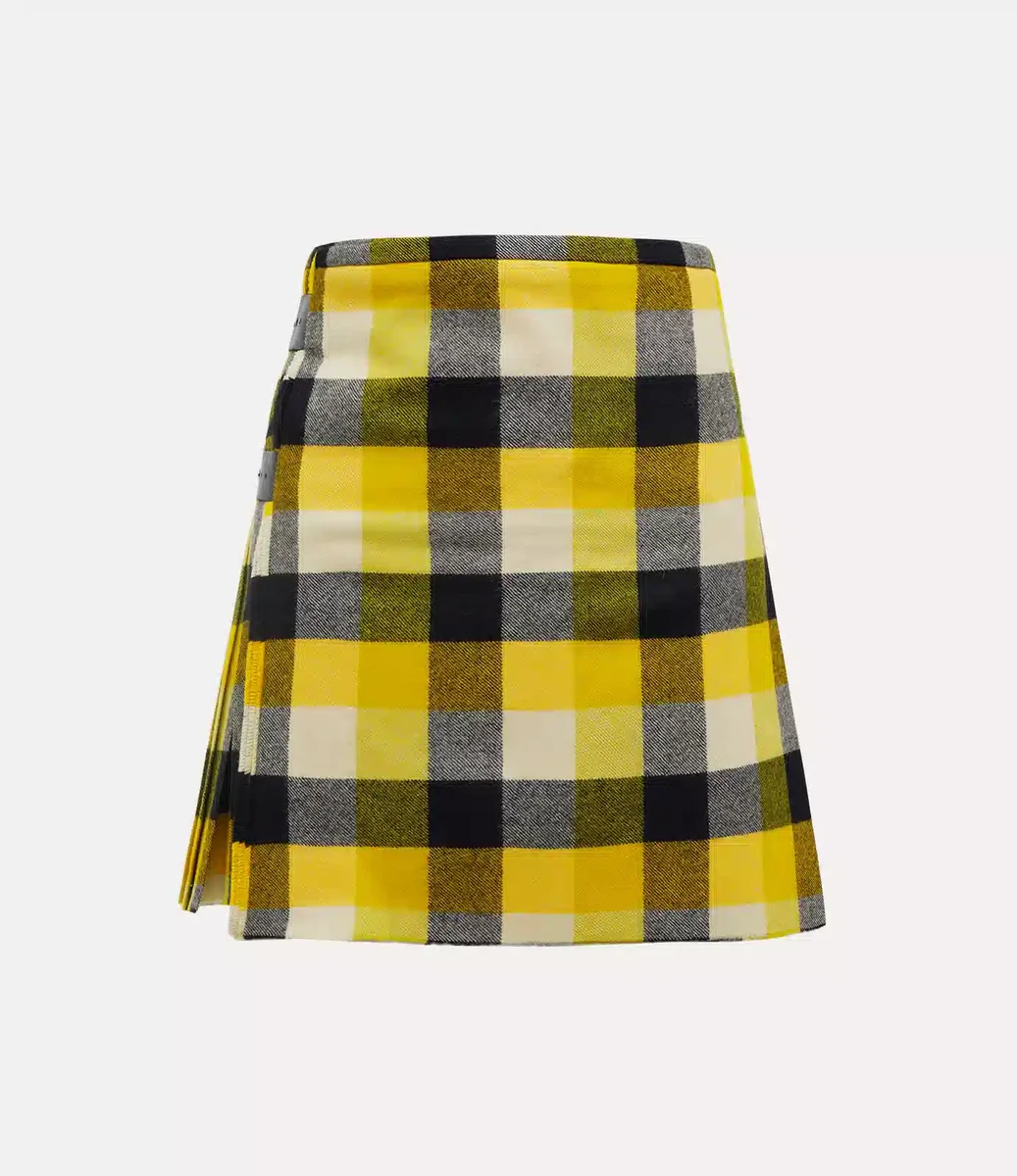 Mini fusta kilt Vivienne Westwood din lână prezintă motivul „Pixel” și o siluetă în linie A care se termină cu pliuri.