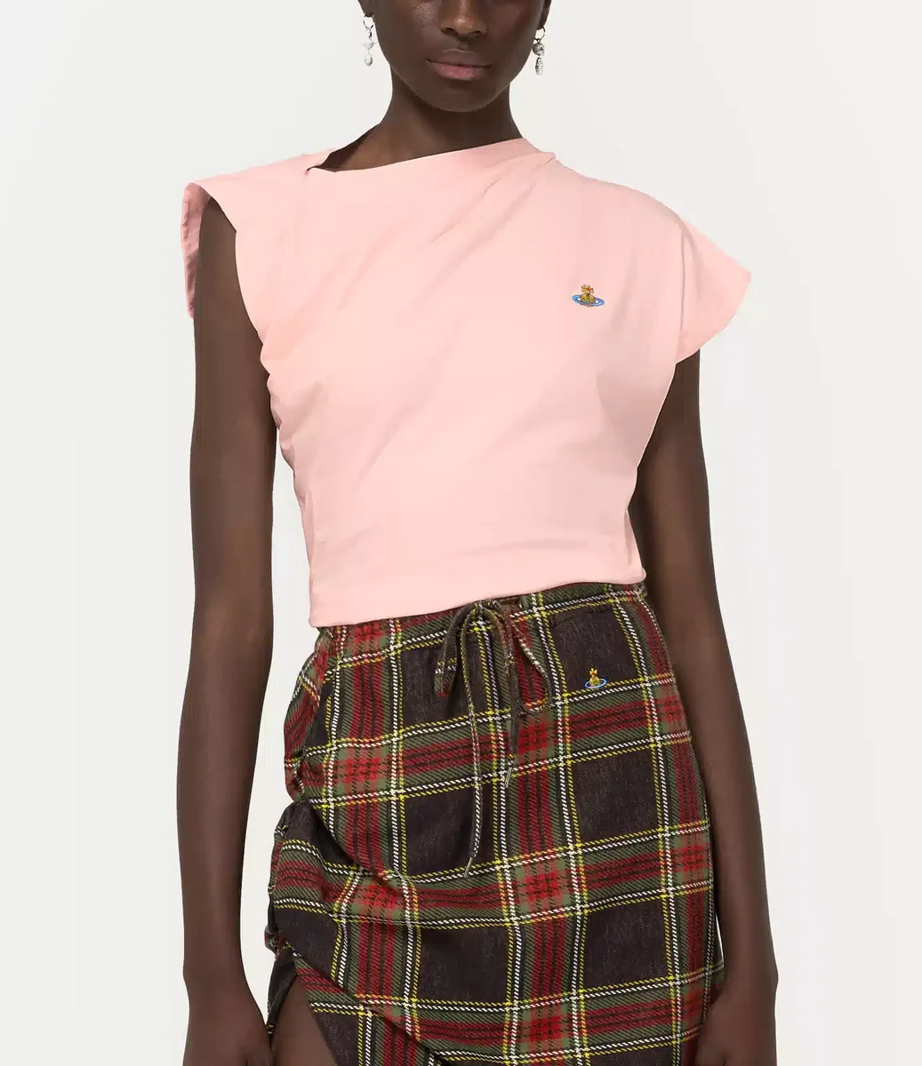 Top Vivienne Westwood Hebo cu finisaj moale din bumbac și broderie multicoloră în formă de glob, completat cu decolteu în V, drapaj și detaliu răsucit în spate.