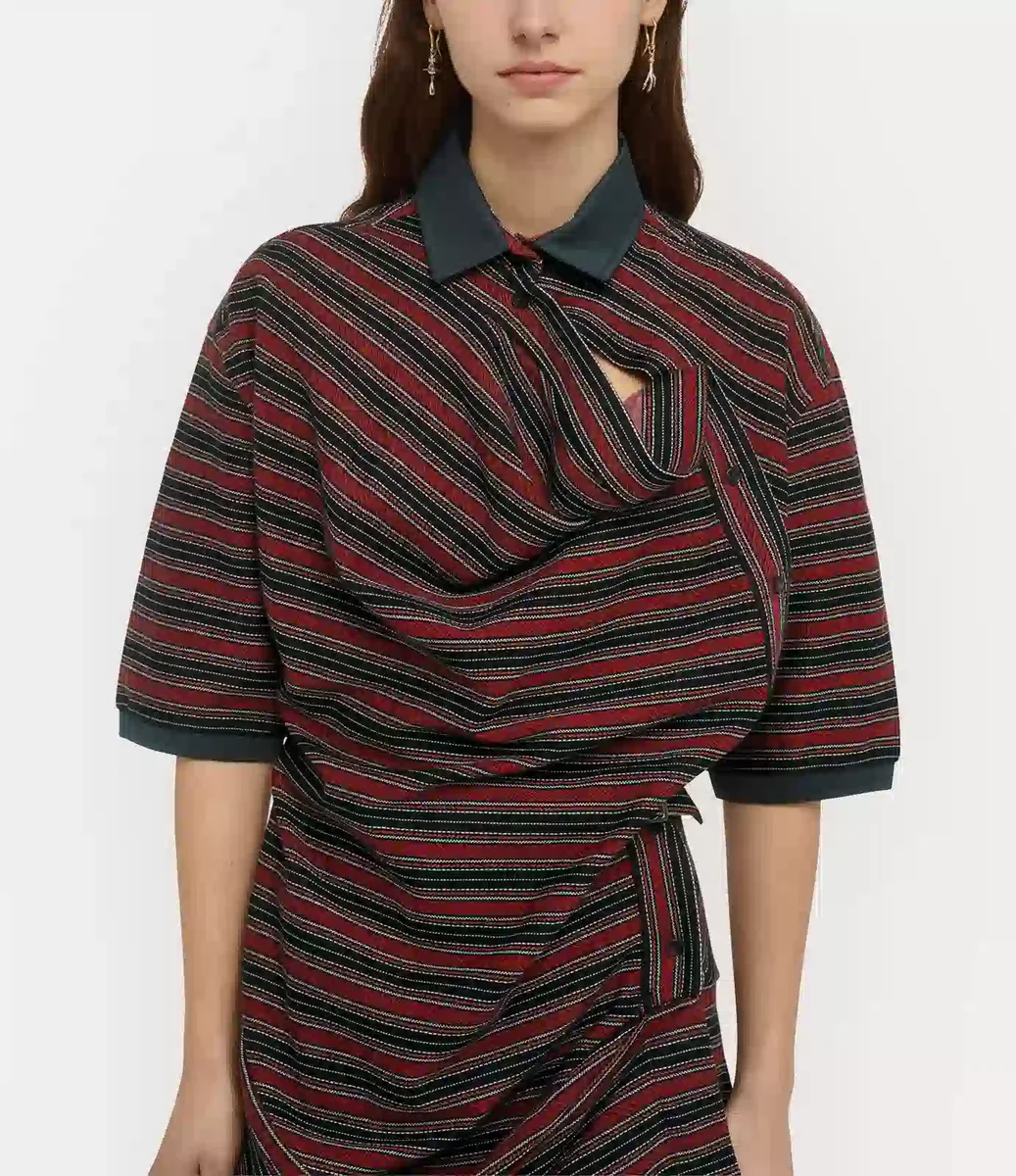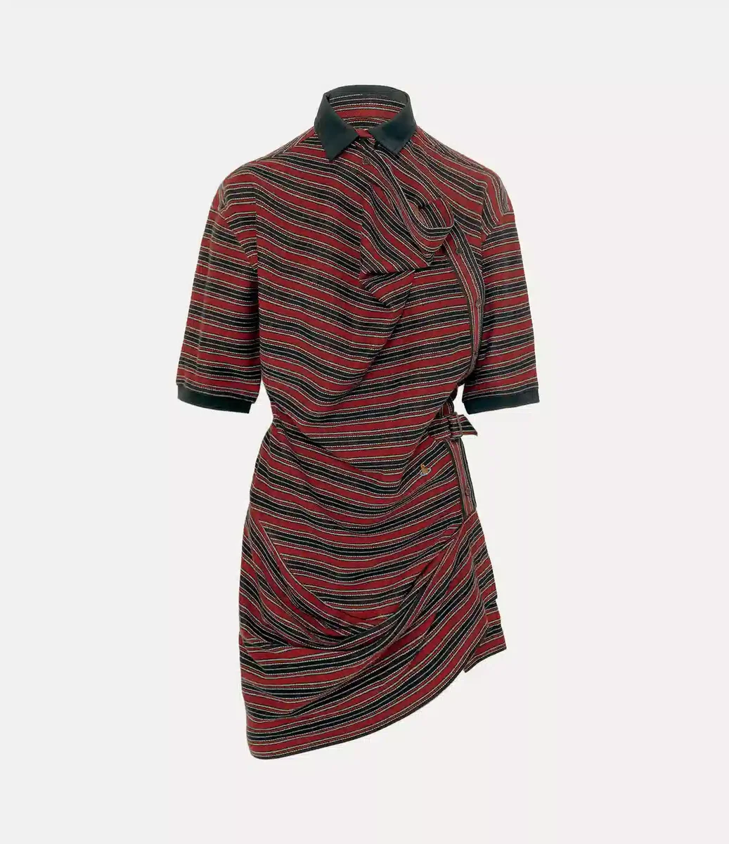 Rochia Ming Polo oferă tehnica noastră caracteristică de croială „Ming”, introdusă pentru prima dată în colecția Andreas Kronthaler, în care forma articolului vestimentar este distorsionată în mod artistic pentru a crea o siluetă aproape suprarealistă. Piesa are motivul cu dungi inspirat din arhiva sezonului, cu o placketă descentrată și draperie la decolteu, care cade într-un tiv asimetric.