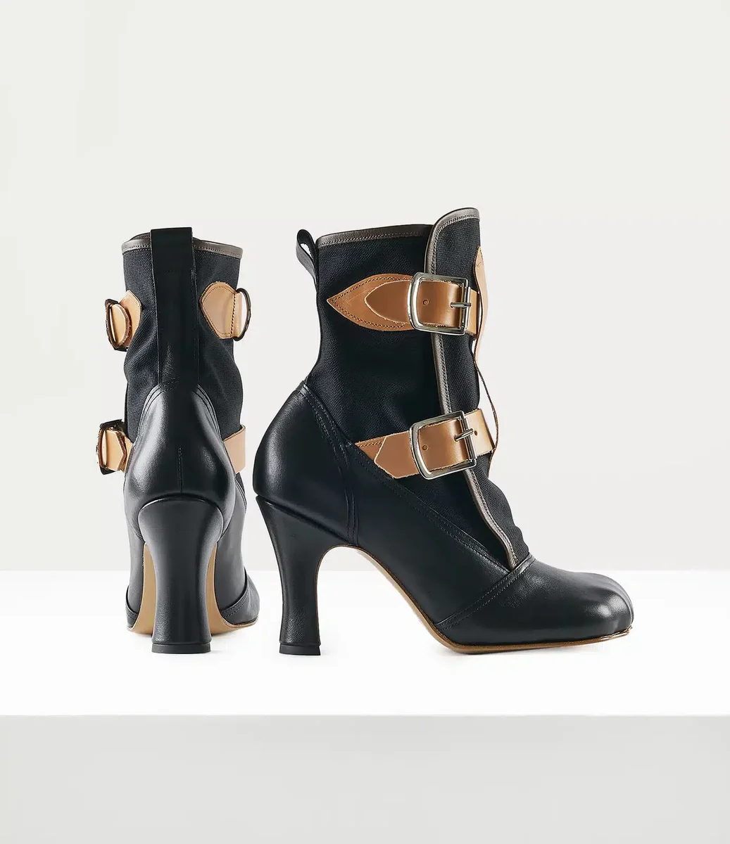 Cizmele noastre Bondage, apărute pentru prima dată în colecția „Nymphs” din primăvara-vara 2002, au o parte superioară Seditionary inspirată de cizmele Seditionaries din arhivă. Cizmele prezintă vârful caracteristic în formă de animal, introdus în colecția „Summertime” din primăvara-vara 2000, imitând laba unui animal și lăsând o amprentă unică. Finisate cu curele din piele cu cataramă rulantă, designul evocă teme de restricție și control din îmbrăcămintea bondage și fetish.