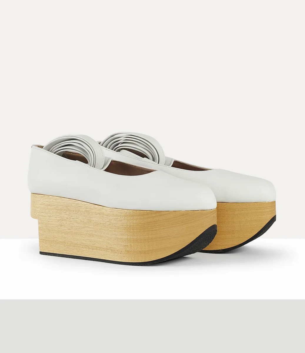Pantofii Rocking Horse Ballerina au fost prezentați pentru prima dată în colecția Vivienne Westwood Toamnă-Iarnă ’87/88 „Harris Tweed”, fiind creați pentru a oferi echilibru și libertate de mișcare. Partea frontală curbată și detaliile decupate ale platformei înalte din lemn permit purtătorului să se balanseze înainte în timp ce merge, iar panglicile delicate din piele sunt inspirate de pantofii de balet.